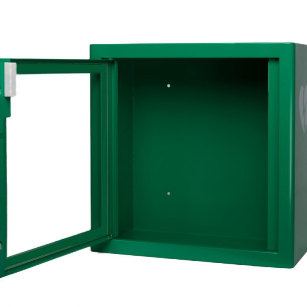 Arky Hjertestarterskab Indendørs i grøn er en solid og sikker løsning til opbevaring af din hjertestarter. Skabet har dimensionerne 38 x 38 x 20 cm og passer til alle former for hjertestarter-løsninger uanset mærke eller fabrikat. Det gør det til et fleksibelt valg for virksomheder, offentlige institutioner og kontorbygninger, der ønsker en professionel og synlig placering af deres AED-enhed, tilgængelig til enhver nødsituation.