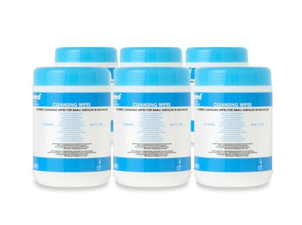 Beholderen indeholder 110 wipes i praktisk dispenser, designet til rengøring og desinfektion af HLR-træningsdukker samt andre overflader, hvor der stilles høje krav til hygiejne.