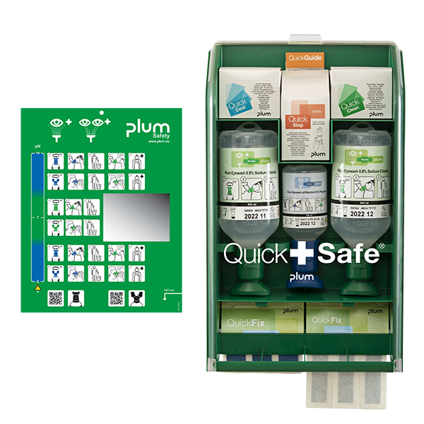 Førstehjælpsstationen fra Plum er en alt-i-én løsning, designet til at håndtere både øjenskader og almindelige førstehjælpsbehov på arbejdspladsen. Stationen kombinerer øjenskyl og førstehjælpsudstyr i en robust vægmonteret enhed, der giver hurtig adgang til vital hjælp i nødsituationer.