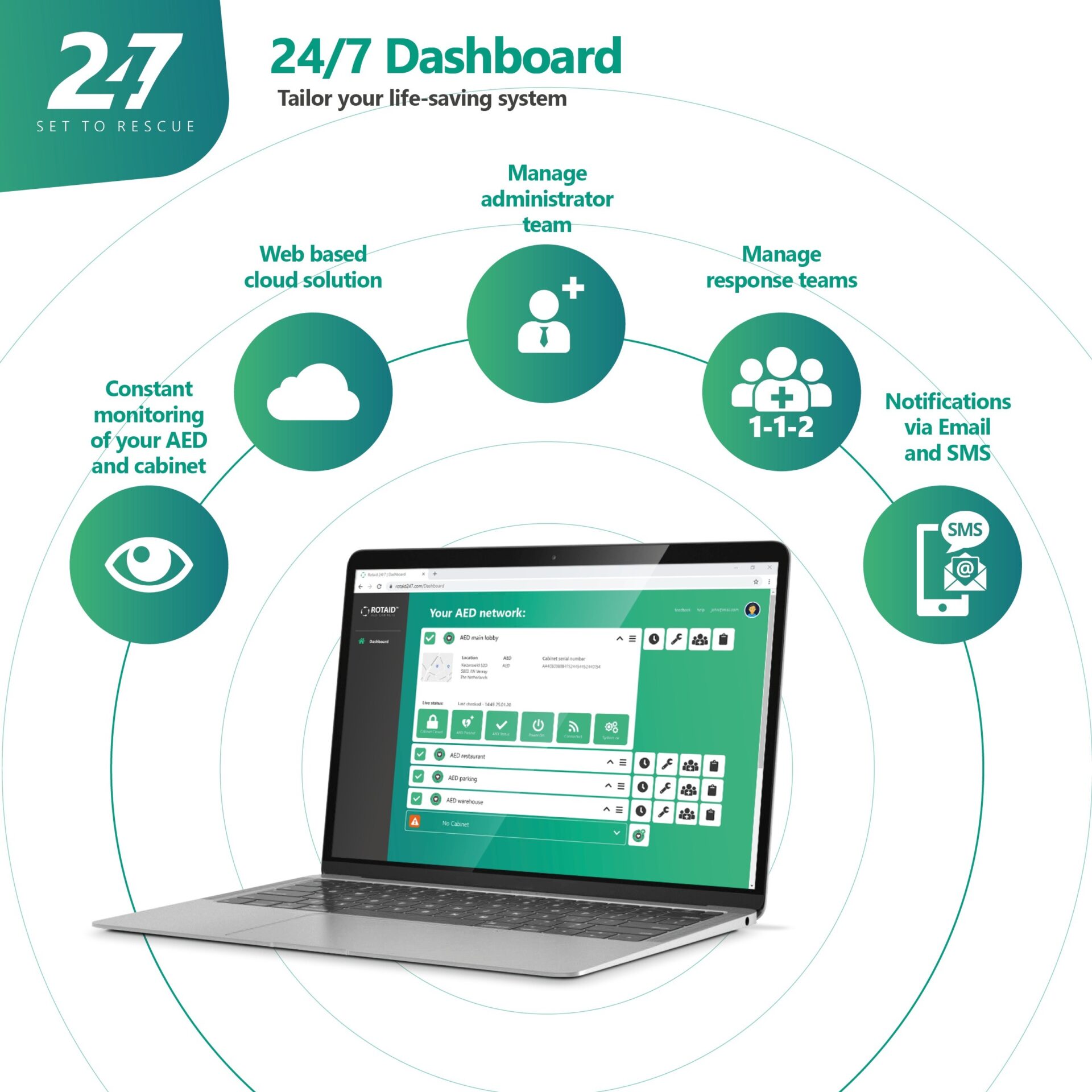 ROTAID 24/7 udendørs hjertestarteskab er den nyeste indenfor udendørs hjertestarterskabe.